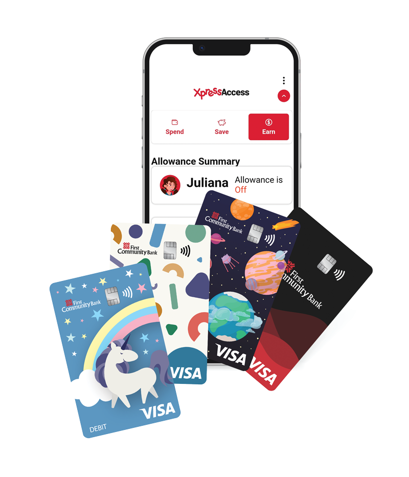 The parent must also have a separate account with First Community Bank where they are either the primary or joint owner. Both accounts must be active and in good standing for the child to be registered and use the XpressAccess platform.